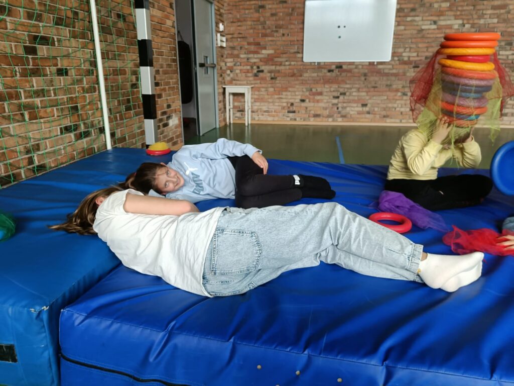 Im Rahmen unserer Freizeitangebote können die SchülerInnen die „Ruheoase“ wählen. Gemeinsam mit Erzieherin Anna holen sie Matratzen aus der Turnhalle und entspannen nach dem Mittagessen bei ruhiger Musik.